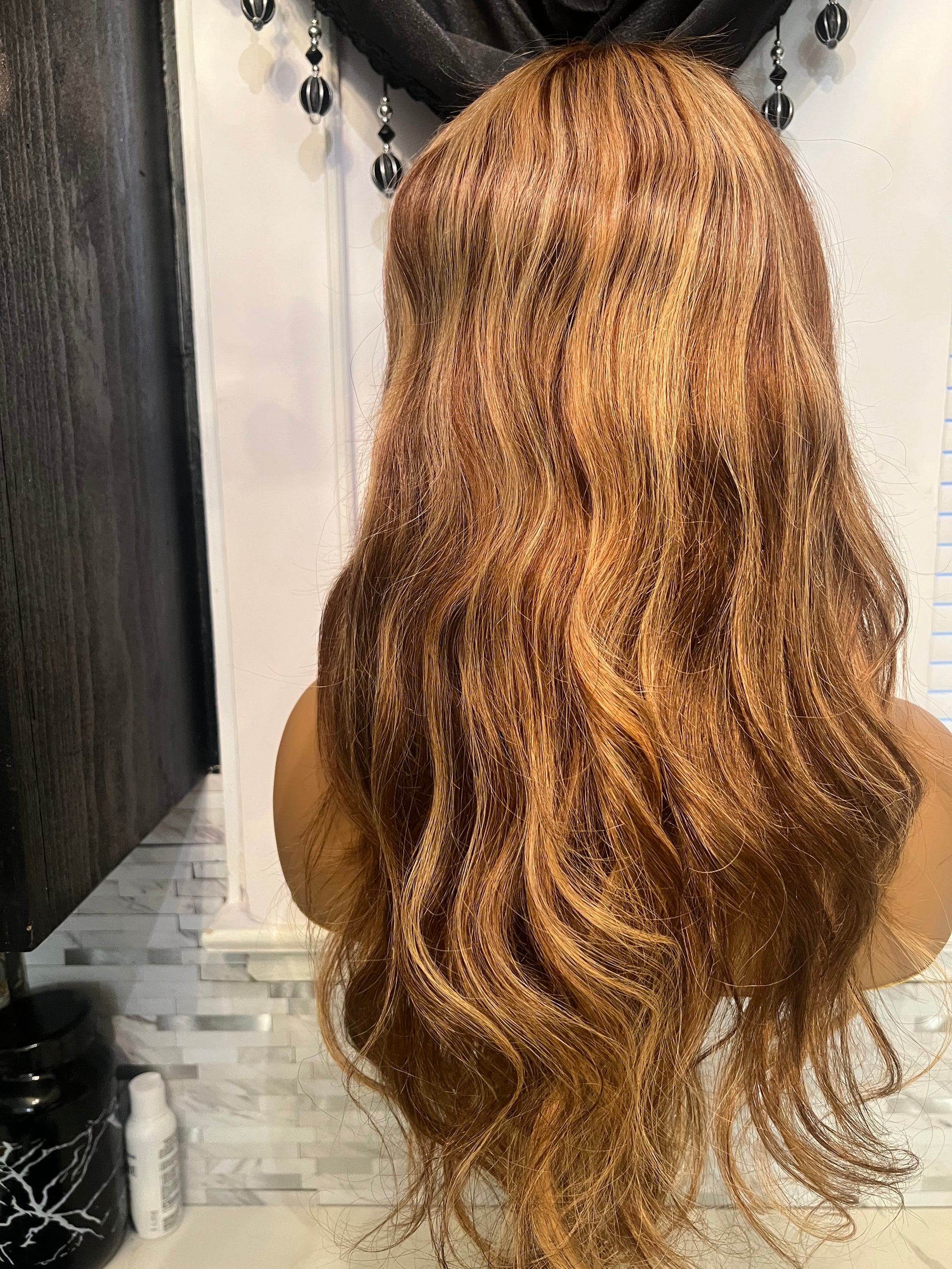 Glue less 4x4 closure human hair 10A grade ombré color wig. This wig can be dyed bleached, colored. 200 density. 26 inches