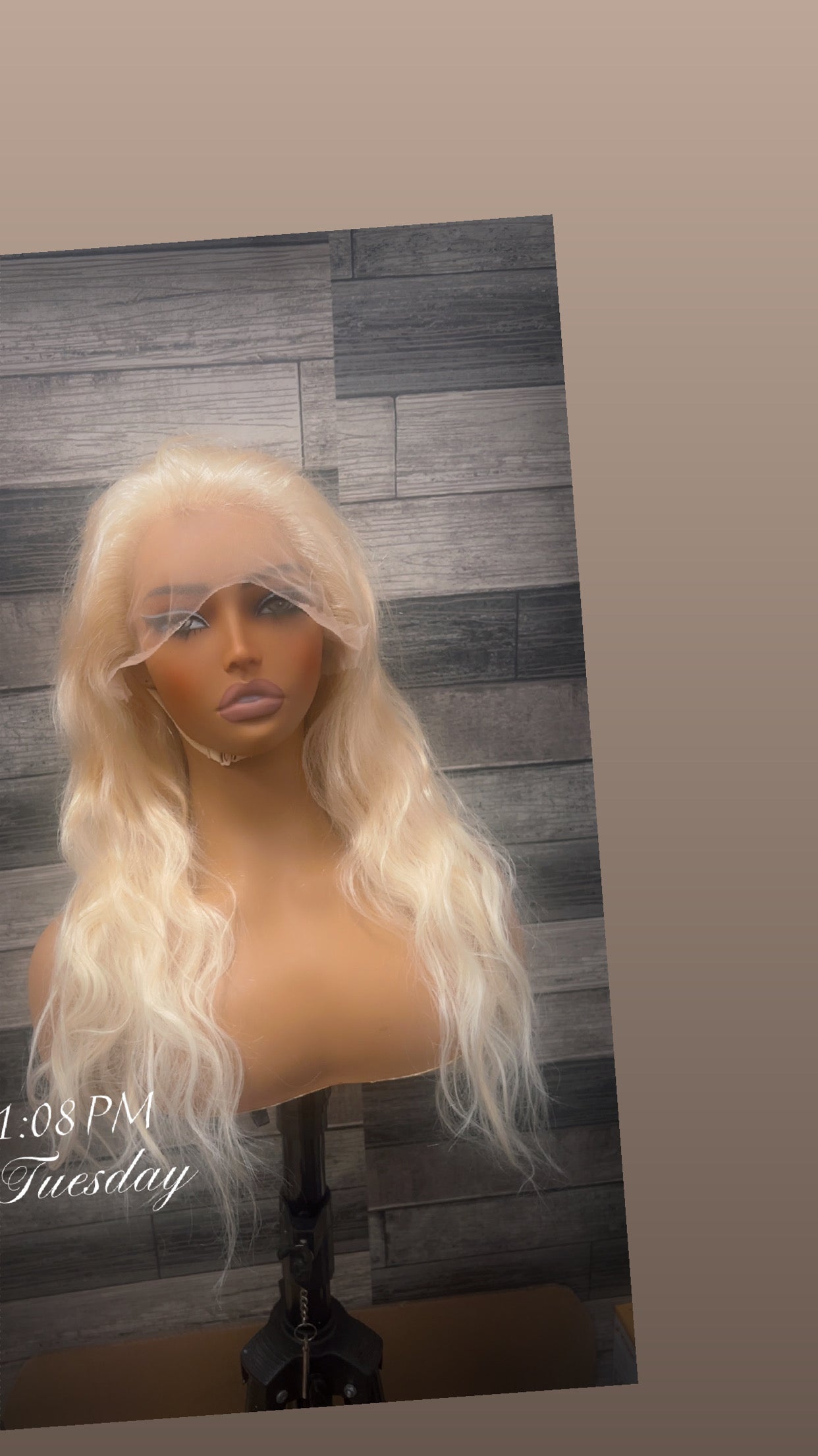 This is a human hair 22 inch frontal body wave wig. This is a 180 density wig. This wig can be bleached or dyed.Experience the ultimate natural look with Blonde, the human hair wig. Made with the highest quality hair, this wig provides a realistic appearance and unbeatable comfort. Enjoy the benefits of a natural looking hairstyle without any hassle. Upgrade your look with Blonde.