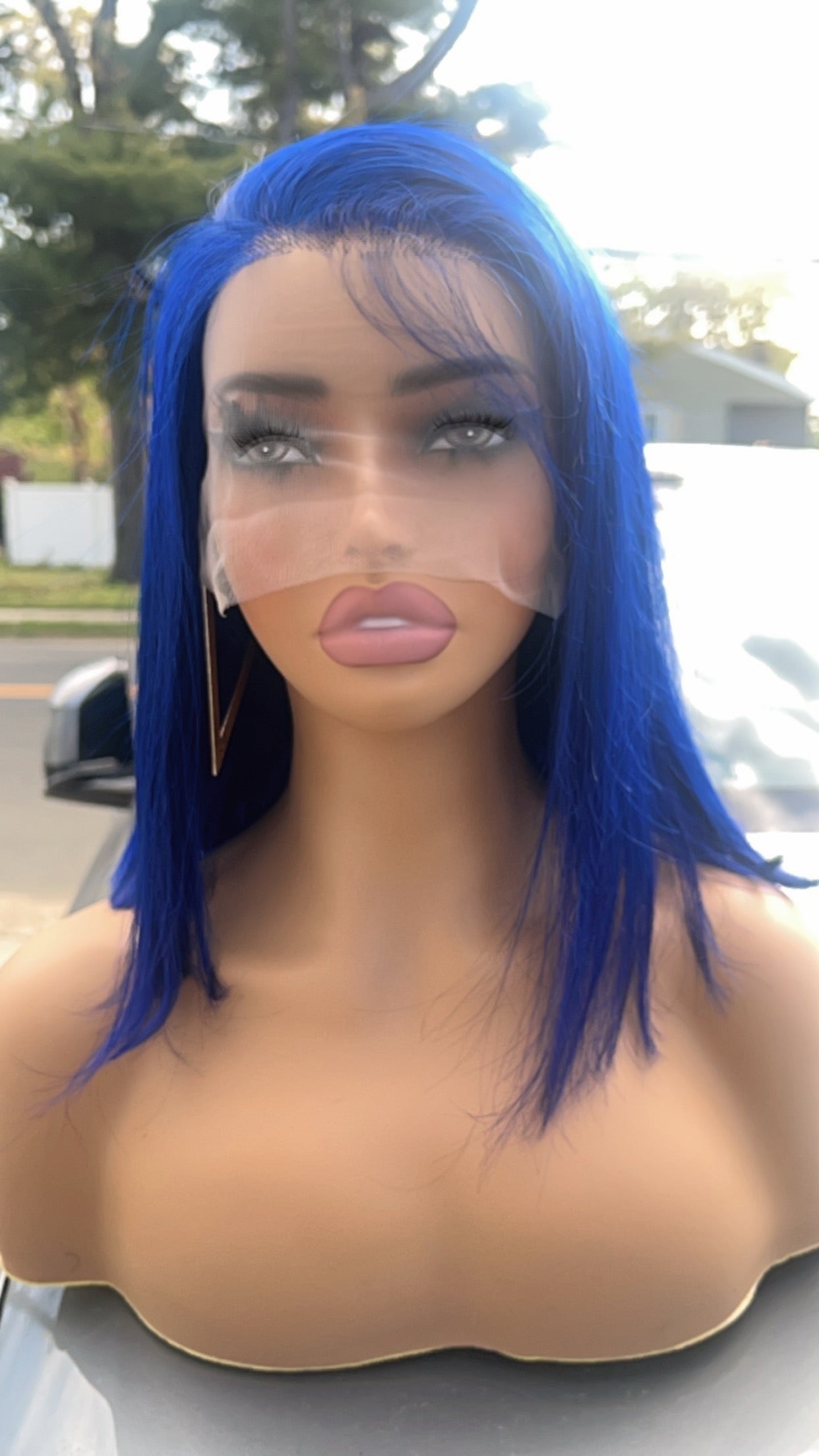 Blue lace frontal 14 inch human hair wig. This is a custom color wig.