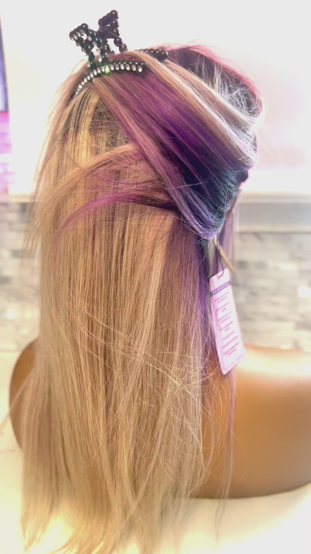 Human hair custom color 26 inch which this is a black root with blond color and a mixture of color. 4x4 lace frontal.